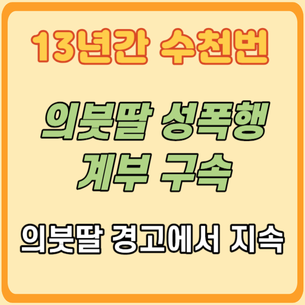 13년 간 의붓딸을 성폭행 한 계부가 경찰에 붙잡혔습니다. 의붓딸은 너무 어려서 부터 지속된 일이라 범죄인 지도 몰랐다고 합니다.
