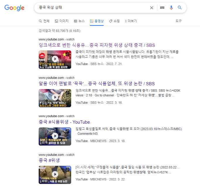 구글에 중국의 위생상태라고 검색만 해봐도 관련 기사가 수두룩 하게 나옵니다.