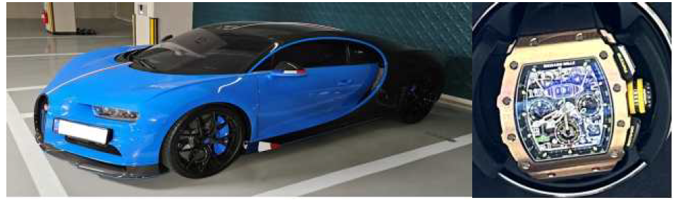 - 초고가 슈퍼카(40억원 상당의 부가티), 유명작가 미술품(백남준, 피카소作) 명품시계(6억원 상당의 리차드밀) 구입 등의 방법으로 합계 550억원을 세탁한 사실이 확인 되었습니다.