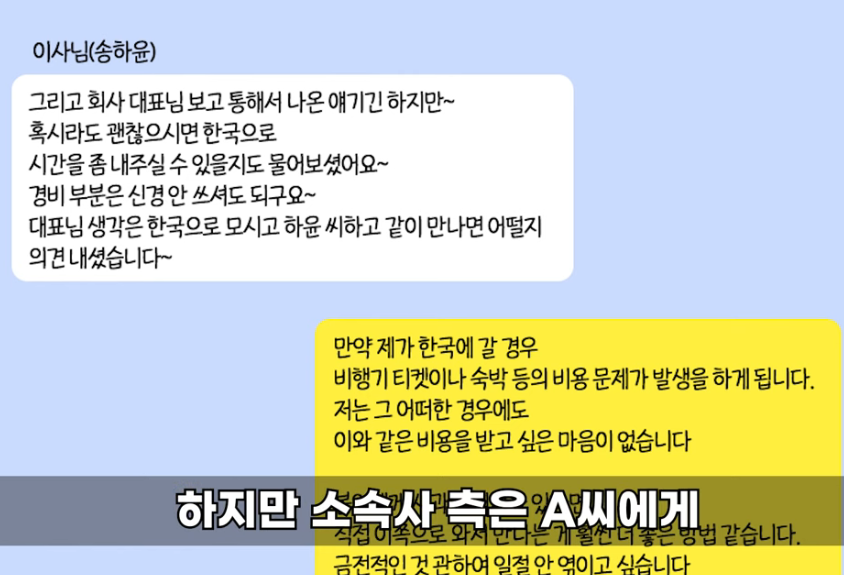 제보자는 해당 영상을 보고 송하윤에게 사흘에 걸쳐 세차례나 직접 메세지를 보내 이유 없이 맞은데 대한 사과를 요구했다고 한다.